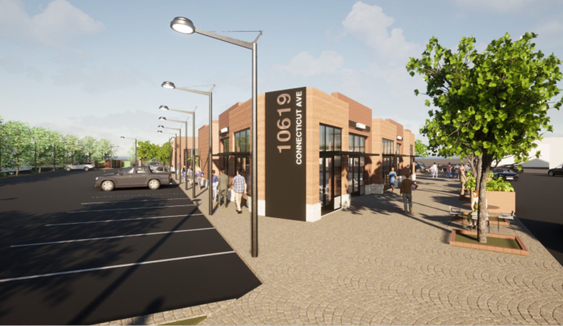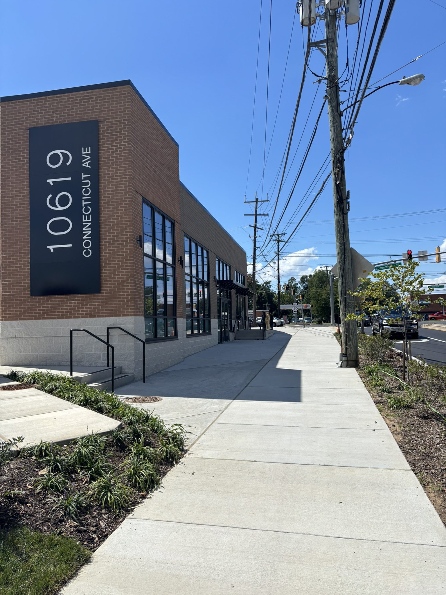 A major design priority from the outset was creating an engaging streetscape without letting parking push the building into the background. Our solution was to place parking at the rear and introduce an inviting passageway by separating the structure into two separate buildings. This design brings the architecture up to the street, encourages pedestrian flow, and guides customers directly to the Connecticut Avenue entrances, successfully blending accessibility, visibility, and a strong retail presence.